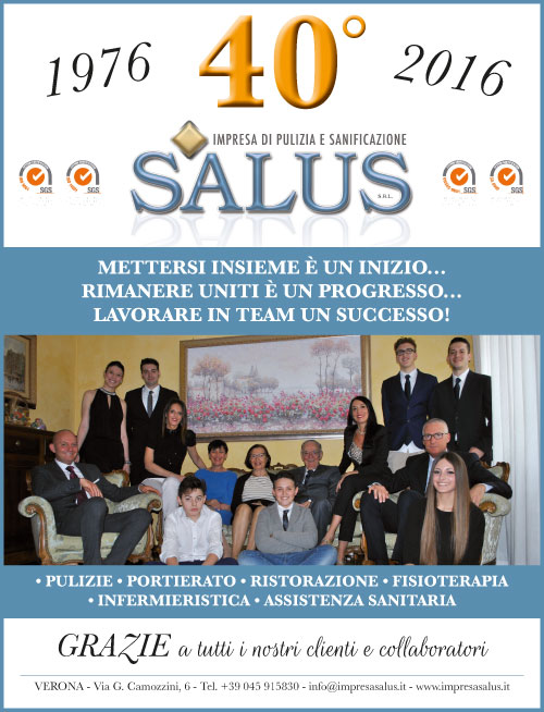 Salus S.r.l. nasce a Verona nel 1976 da un’iniziativa dell’Attuale Amministratore Unico Corrado Frasca che, grazie al supporto e la collaborazione della famiglia, ha portato l’azienda ad essere leader nel settore del multi servizi rivolto ad Ospedali, case di cura e Riposo, Istituti bancari, gruppi industriali, istituti Scolastici, Enti Pubblici e Privati, professionalità premiata con la Presidenza Nazionale di categoria Unionservizi della Confapi ricoperta dal 2001 al Gennaio 2010 da Frasca Corrado e proseguita poi dal figlio Giovanni. A partire dal 4 aprile 2016 la figlia Vincenza ricopre la carica di Presidente Nazionale Confimi Industria Multiservizi. (http://www.confimi.it)